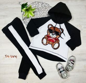 В комплект входит два предмета: толстовка+леггинсы.
