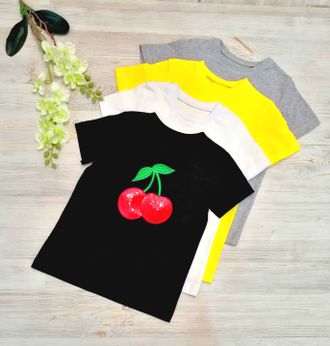 Арт. Ф67/7 Футболка с аппликацией "ВИШНЯ" из пайеток. Цвета в ассортименте. Размер с 86-152