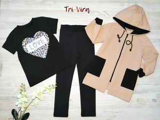 Арт. КБК/Т/4 Комплект: кардиган(футер)+лосины(футер)+футболка( кулир).Цв.черн/кофе.Размер с 86-152