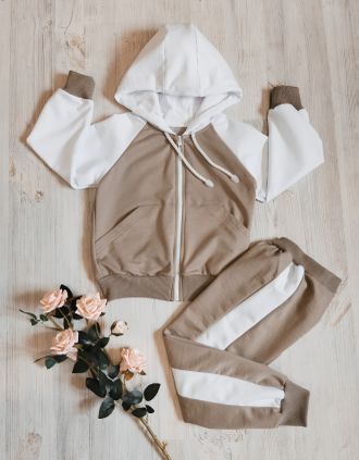 Арт. 2СК/45 Комплект: толстовка с карманом+брюки(футер). Цвет светлый какао/белый(бел.молн). Размер с 86-152