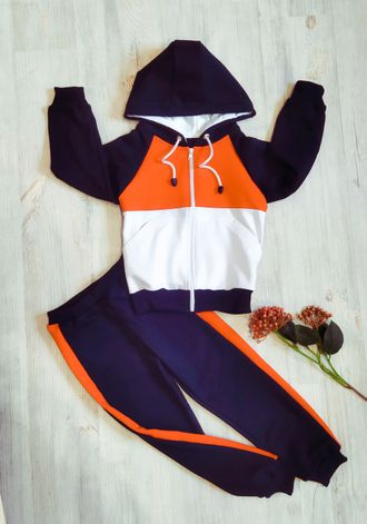 Арт. К/ТБ-3Б/2 Комплект:толстовка с карманом+брюки(футер).Цвет: синий/белый/горчица(бел.молн). Размер с 86-152