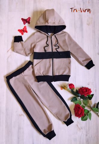 Арт. К/ТБ-8 Комплект:толстовка с карманом+брюки(футер).Цвет: кофе/черн(черн.молн). Размер с 86-152