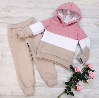 Арт.18/НАЧЕС/ТРЕХЦВ Теплый комплект из футера с начесом. Цвет: роз/бел/беж. Размер с 98-128