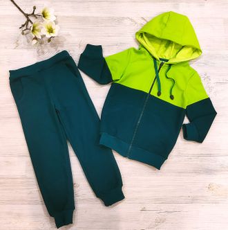 Арт. К/ТБ-10 Комплект:толстовка+брюки(футер).Цвет: изумруд/салатовый(изумруд молн). Размер с 86-152