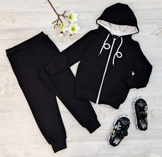 Арт. К/ТБ-13 Комплект: толстовка с карманом+брюки.Цвет: черный(бел.молн). Размер с 86-152