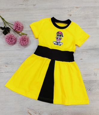 Арт. КУЛ/П35/2Ж Платье для девочки(кулир). Цвет:желтый/черный. Размер с 86-140
