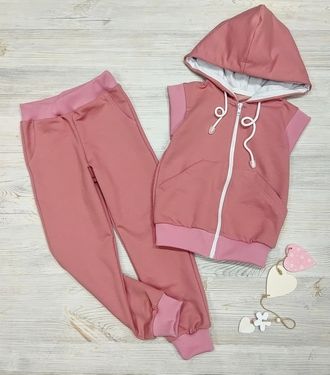 Арт. ЖБ/002/Р Комплект:жилет+брюки(футер).Цвет: розовый(белая молн). Размер с 74-152