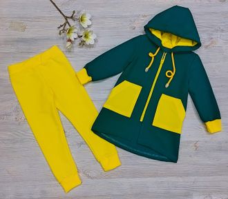 Арт. 2МКИ/7 Комплект для девочек (футер).Цвет:изумрудный/желтый Размер с 86-152