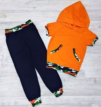 Арт. 2КУЛ/ТБ/КАМ-05 Комплект толстовка+брюки (кулир).Цвет: синий/оранж. Размер с 86-140