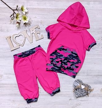 Комплект: толстовка с капюшоном+бриджи, изготовлен из 100% хлопка. Мягкая трикотажная ткань, классический крой и точное соответствие размеру, все эти достоинства отлично послужат активному любителю приключений. Модель универсальна, подойдет для детей любого возраста.