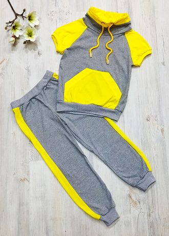 Арт. ХМ-ФБ/ХОМУТ/2Б Комплект: футболка+брюки(кулир). Цвет: серый/желтый. Размер с 86-146