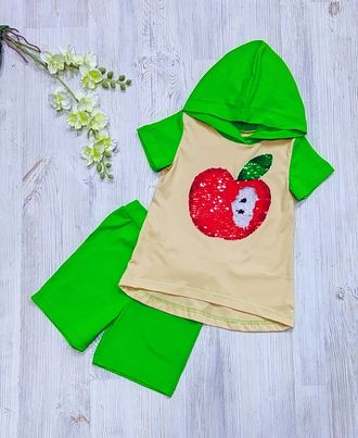 Арт. 2КУЛ/АПЛ/ТБ-ЯБЛОКО Комплект туника+шорты(кулир).Цвет:салатовый/бежев. Размер с 86-152