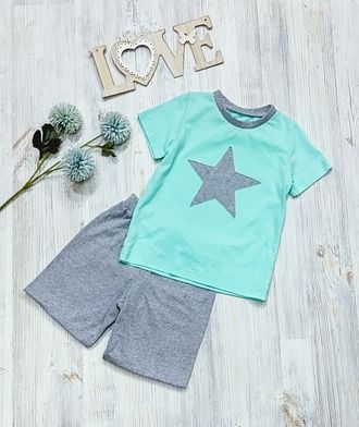 Арт. ПЖ/ДК-112 Домашний костюм для мальчика. Цвет:ментол/серый.Размер с 86-152