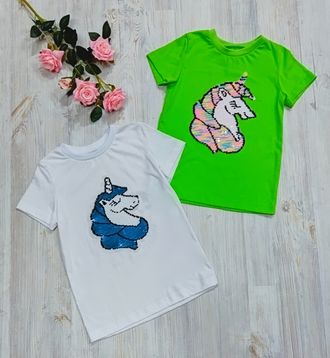 Арт. Ф67/ЕДИНОРОГ Футболка с пришивной аппликацией. Цвета в ассортименте. Размер с 98-146