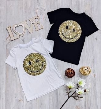 Арт. Ф67/СМАЙЛ Футболка с пришивной аппликацией. Цвета в ассортименте. Размер с 104-152