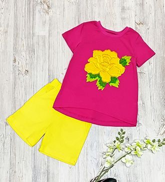 Арт. 2КУЛ/АПЛ/ТБ-ПИОН/Б Комплект туника+шорты (кулир).Цвет:малина/желт. Размер с 86-152