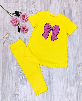 Арт. 2КУЛ/АПЛ/ТБ-БАНТ/Ж Комплект туника+бриджи (кулир).Цвет: желтый. Размер с 86-152