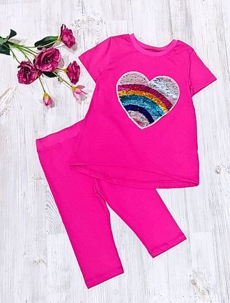 Арт. 2КУЛ/АПЛ/ТБ-РАДУГА Комплект туника+бриджи (кулир).Цвет: малина. Размер с 86-152