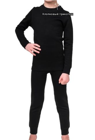 Арт. ТБ/ХЛОПК-2 Детское хлопковое белье, для низкой активности: лонгслив +кальсоны. Цвет: черный. Размер 86-164