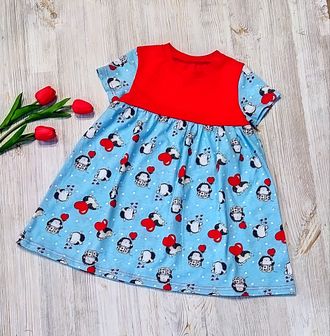 Арт. КУЛ/П46-2ЁЖ Платье для девочек "Ёжики"(кулир).Цвет:голубой/красный. Размер с 86-128