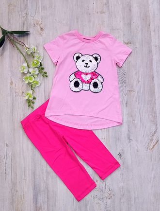 Арт. 2КУЛ/АПЛ/ТБ-МИШКА Комплект туника+бриджи (кулир).Цвет: розовый/малина. Размер с 86-152