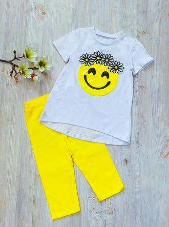 Арт. 2КУЛ/АПЛ/ТБ-СМАЙЛ-1 Комплект:туника+бриджи.(кулир).Цвет:белый/желтый. Размер с 104-152