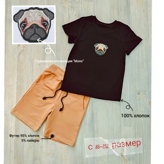 Арт. ФУТ/ФШ-БЕЖ.МОПС Комплект футболка(кулир)+шорты(футер).Цвет:черный/бежевый. Размер с 86-152