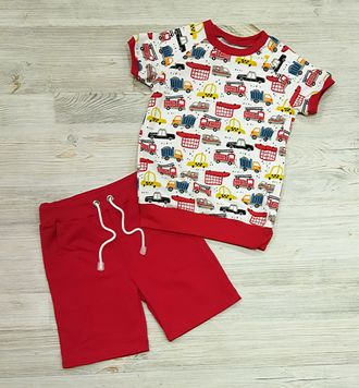 Арт. НК/ФШ/ПП-5 Комплект футболка(интерл)+шорты(футер).Цвет: красн/белый. Размер с 86-134