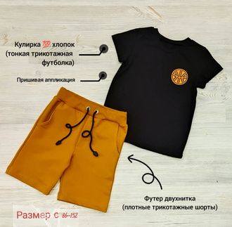 Арт. НК/ФШ/БАСКЕТБ Комплект футболка(кулир)+шорты(футер).Цвет:горчица/черный. Размер с 86-152